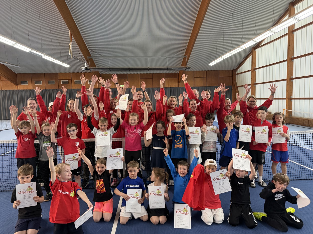 In drei Motorikübungen und den anschließenden Gruppen- und KO-Spielen zeigten die Tennisstars von Morgen vollen Einsatz und dass man auch schon in jungem Alter tolles Tennis spielen kann.